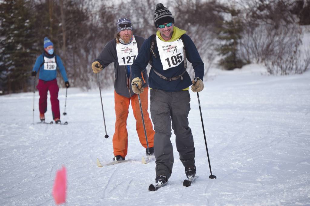 In its fourth year at the trail system just outside of Soldotna, the Tour employed 15 waves each two minutes apart in order to keep the record turnout of 136 finishers as spread out as possible.