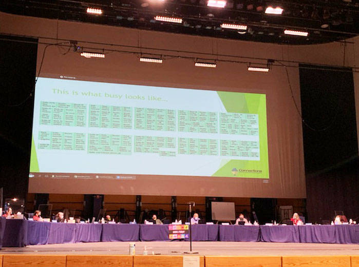 That document compares the annual number of days custodians work — 206, to the number of days student nutrition services employees work — 177, to the number board members work — 260. Though the board meets regularly once a month, Jones said the 260-day figures factors in the work board members do outside of their regular meetings, such as attending site council and assembly meetings and being the point of contact for people in their community who have an issue they want to talk about.