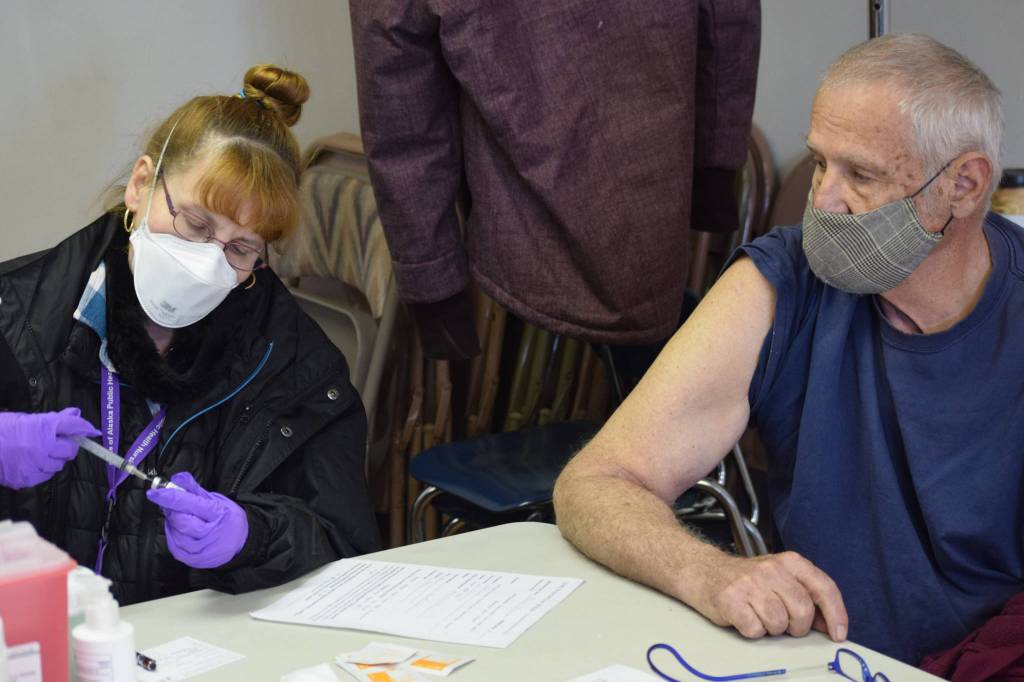 The Kenai United Methodist Church on Monday, in an event hosted by the church and the Kenai Public Health Center, offered single-dose COVID-19 vaccines during its weekly food bag distribution.