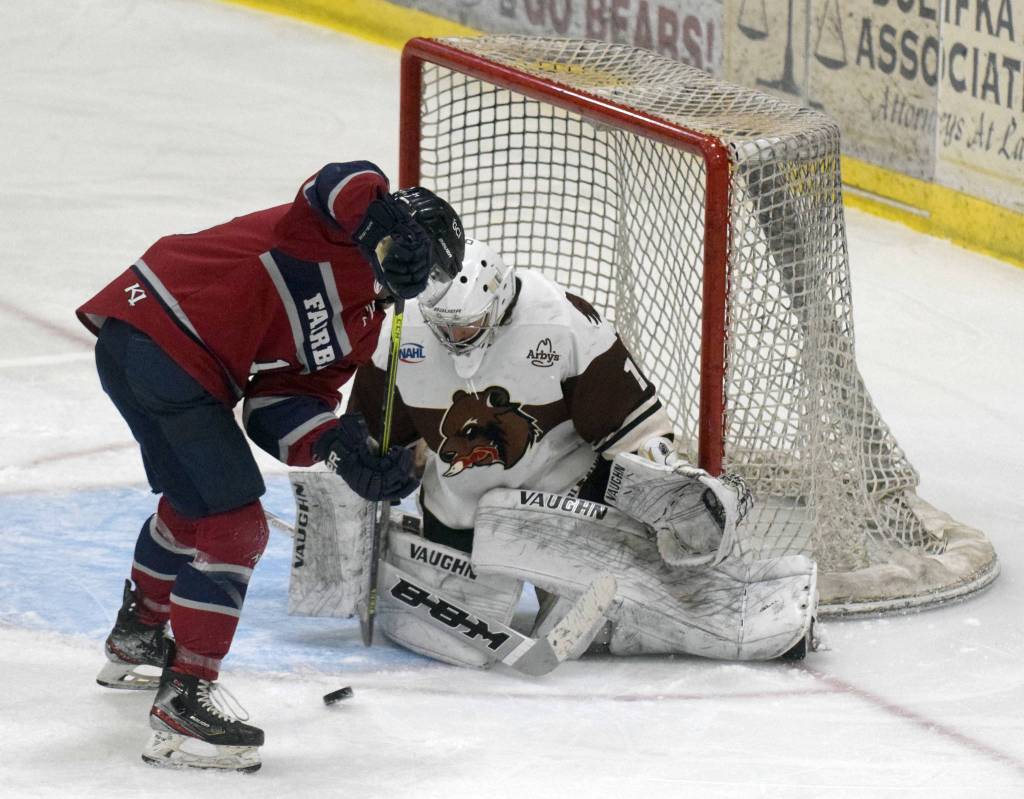 Hargraves made 19 saves for the Ice Dogs, while Nathan Dickey stopped 26 for the Bears.