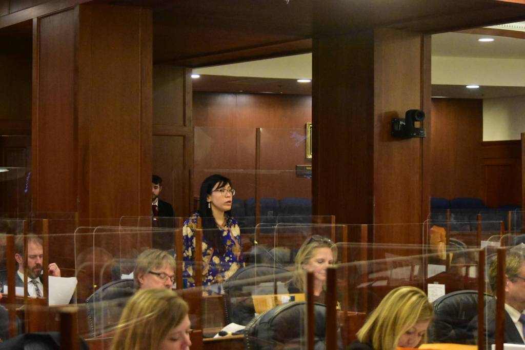 Rep. Tiffany Zulkosky, D-Bethel, urges her colleagues to vote for a bill to have the state recognize the Alaska’s 229 already federally recognized tribes on Wednesday, May 19, 2021. The bill was one of dozens heard Wednesday as lawmakers tried to pass as much legislation on the last day of the legislative session. (Peter Segall / Juneau Empire)