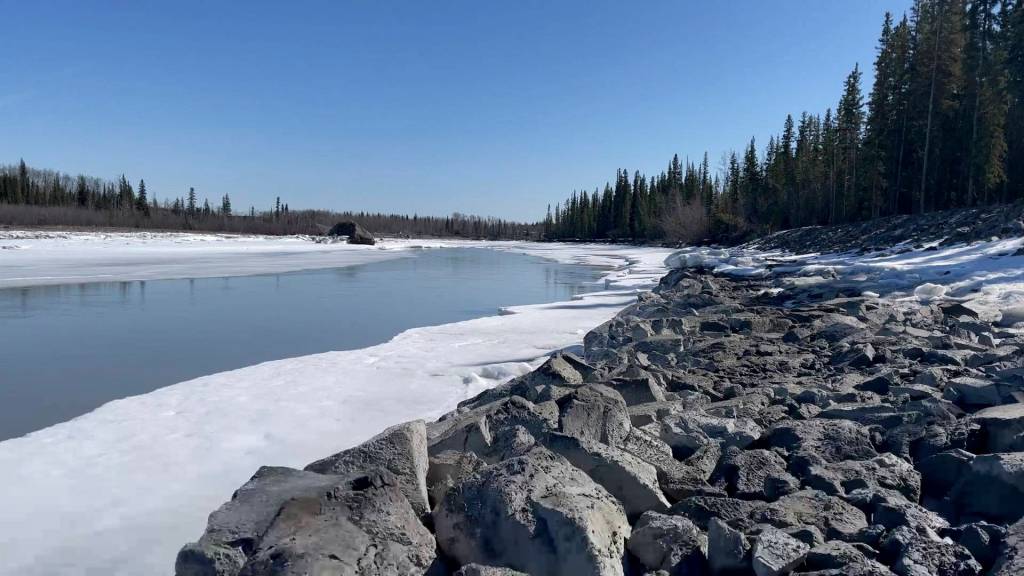 In this April 22, 2021, photo, signs of spring thaw appear along the Tazlina River in Tazlina, Alaska. The Catholic Church wants to sell 462 acres that once housed the Copper Valley mission school to the Native Village of Tazlina, a federally recognized tribe. The tribe is scrambling to raise the nearly $1.9 million asking price so it can regain stewardship of its ancestral land. (John Tierney/Indian Country Today)