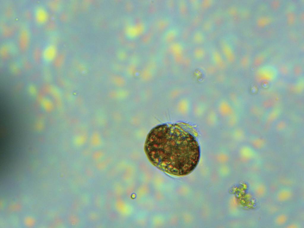 Greer’s photo also went viral on the Kachemak Bay Nature Watch Facebook page. Research coordinator Steve Baird at the KBNERR went out last Saturday and took water samples. Masui examined them under a microscope and took photos — a challenge since Mesodinium rubrum skitters around like water on a hot skillet. She said she thought her identification was correct, but to be sure she sent photos to Dr. Wayne Litaker, a retired phytoplankton expert with the National Centers for Ocean Science in Beaufort, North Carolina. He confirmed her identification — a red tide, yes, but not the toxic plankton blooms seen down south.
