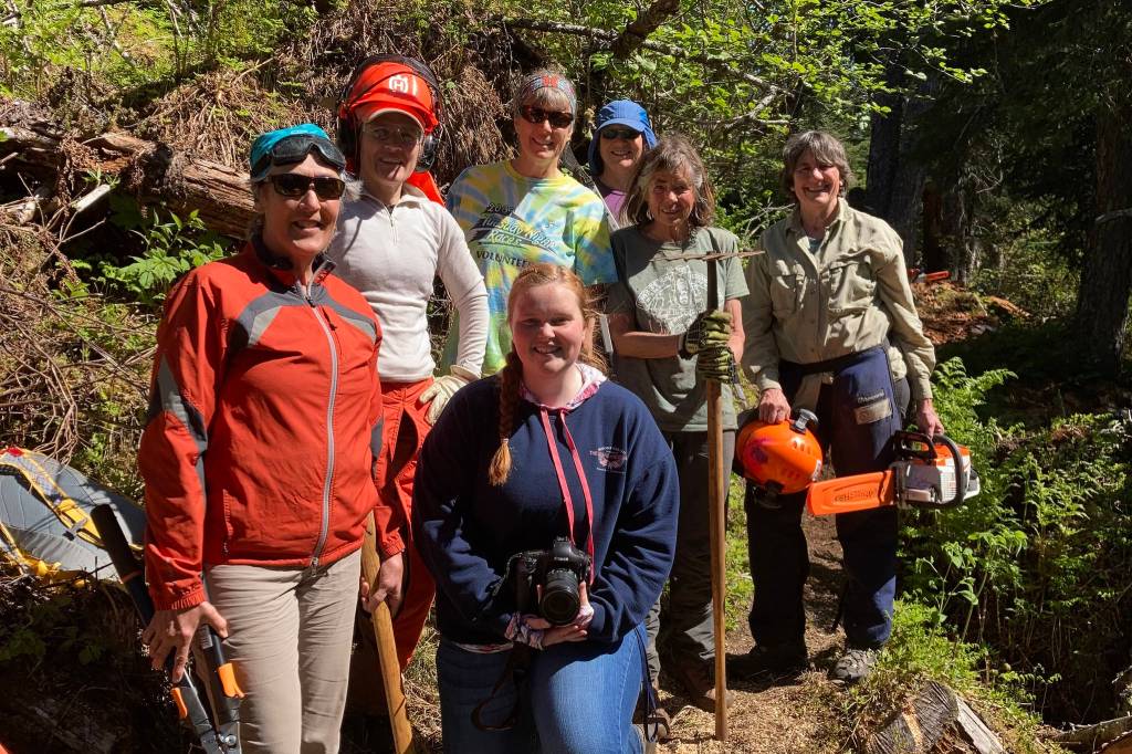 All of these women were brought together on Saturday by Sarns, the president of the Friends of Kachemak Bay State Park, who organized the trail cleanup. As a passionate outdoorswoman, Sarns says she finds her peace and strength in nature. Sarns originally signed up for Trails Day as a volunteer, but quickly found herself asking questions and learning how to use the equipment in order to run her own crew one day. Because of Sarns’ efforts with the nonprofit organization, numerous miles of trails have been cleared and are now passable for hikers to enjoy.