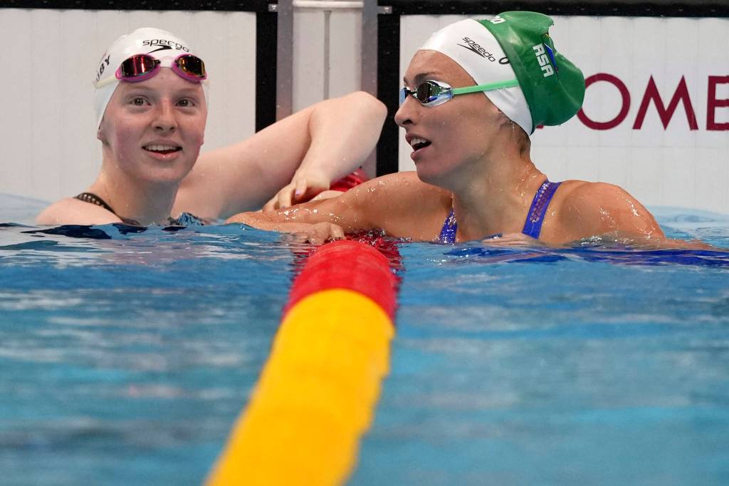 Schoenmaker had the top time in the prelims, going 1:04.82 to break King’s 2016 Olympic record. King, who was third in the prelims at 1:05.55, still has the world record from her 1:04.13 in 2017.