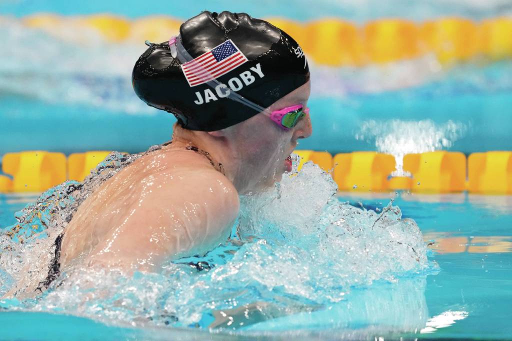 Jacoby finished with a time of 1 minute, 4.95 seconds, beating both the Olympic record holder from South Africa, Tatjana Schoenmaker (1:05.22), and the world record holder and two-time Olympic gold medalist from Team USA, Lilly King (1:05.54).