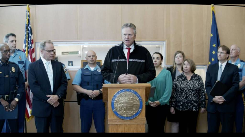 Dunleavy was joined by Municipality of Anchorage Mayor Dave Bronson, Anchorage Police Department Chief Ken McCoy, DPS Commissioner Jim Cockrell, Alaska Department of Corrections Commissioner Nancy Dahlstrom, Alaska Deputy Attorney General John Skidmore and advocates for survivors of sexual assault.