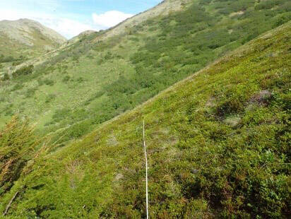 In 2021, two years after the fire event, we again collected vegetation composition data in the alpine tundra. Surveys along these slopes indicated still minimal recruitment during this post-fire time period.