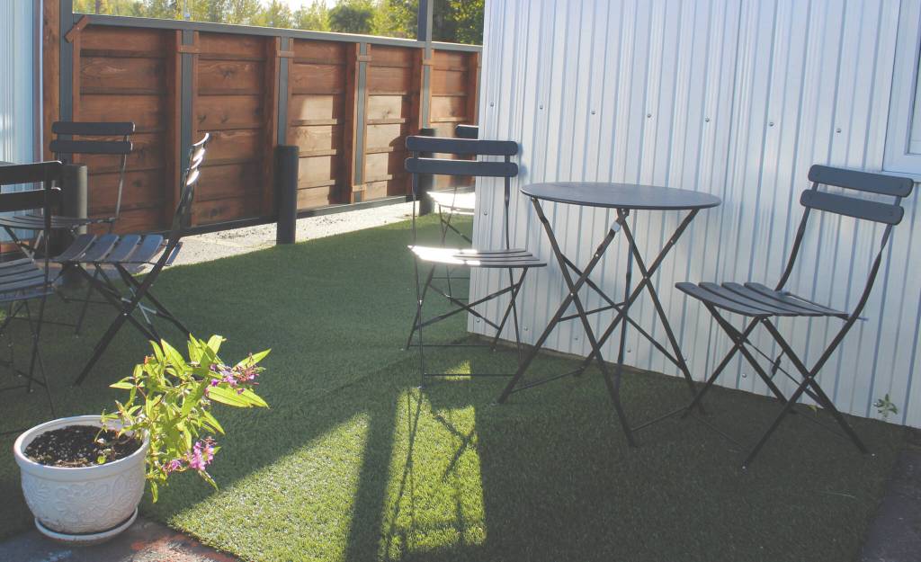 At Everything Bagels in Soldotna, cafe-style tables and chairs now line the outside of the building. Owner Pamela Parker said the expansion has allowed her to almost double the capacity of her business and that she often sees people sitting outside on sunny days.