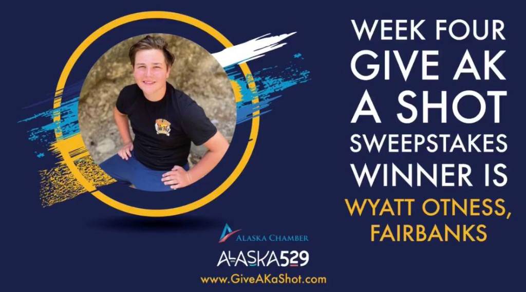 The Alaska Chamber announced the fourth week’s lottery winners Thursday, as part of the “Give AK a Shot” COVID-19 vaccine incentive program.