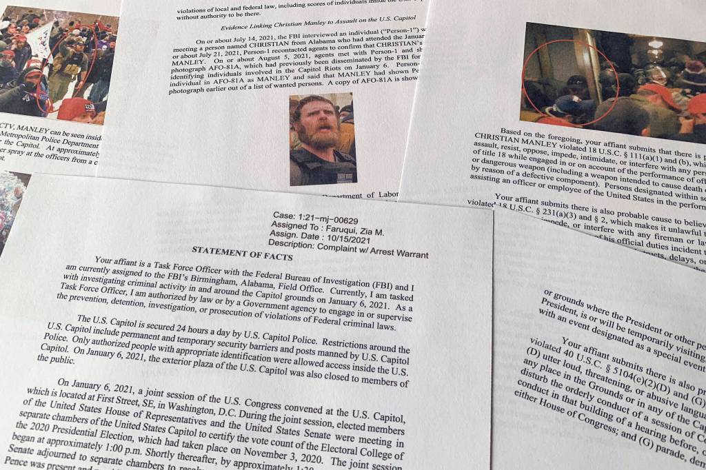 Court documents did not list an attorney for Manley. His ties to Alaska were not immediately known. According to a statement filed in the case by Stephen Lee, an FBI special agent in Birmingham, Alabama, an informant met someone named Christian from Alabama, who had attended the riot. That person a week later called back to give them the last name Manley.
