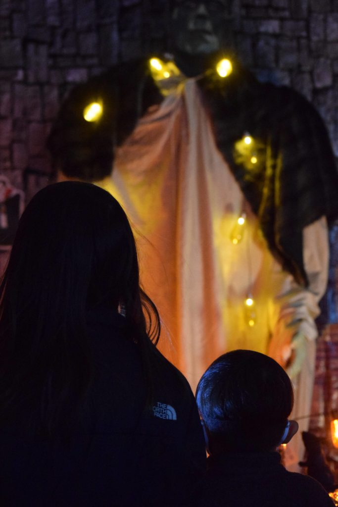 Upon entry to the haunted house, patrons are introduced to well-known spooky characters — Count Dracula, Frankenstein, the Invisible Man and Medusa — to name just a few. Most of the displays are activated by clapping or by motion sensors.