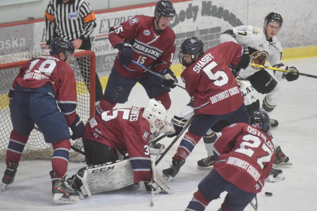 Goalies — Fairbanks, Hargraves (45 shots, 42 saves); Kenai River, Aitken (32 shots, 28 saves).
