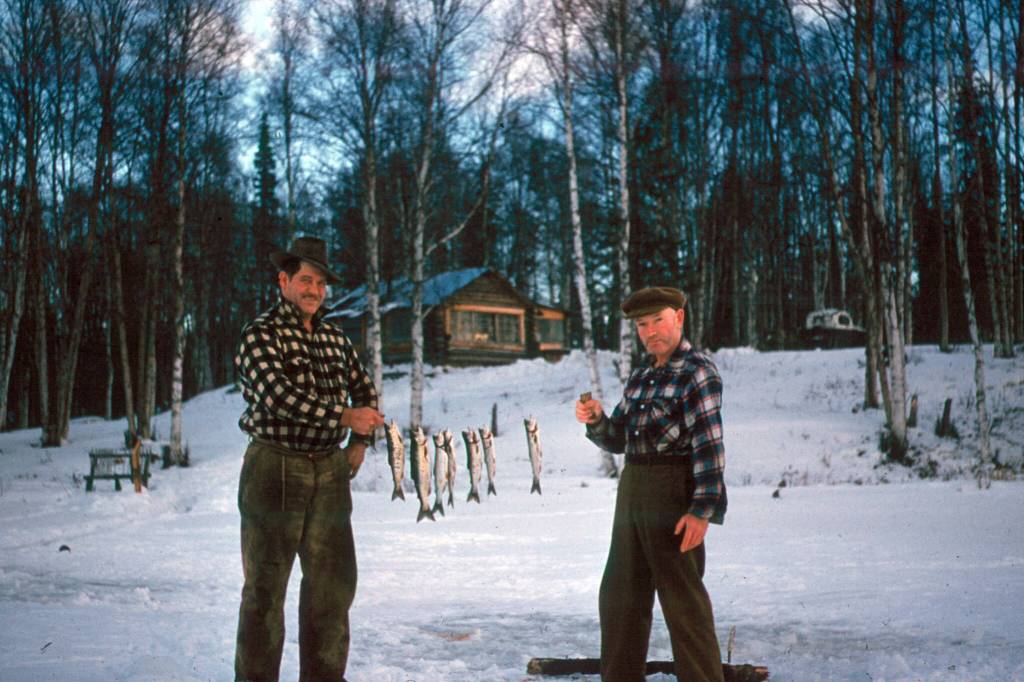 When the tracks in the fresh snow left the graveled Sterling Highway that late afternoon in mid-winter 1949, they formed a fresh clear path down the crude 3-mile road Bob Mackey had cut to his home on the Mackey Lakes. So the two late arrivals to Mackey’s social gathering — an ice-fishing party — followed those footprints, and followed them easily … at first.