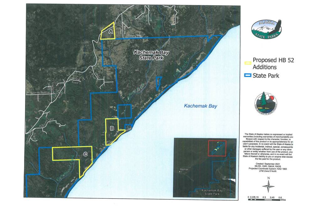 An online meeting last Thursday organized by the Alaska Division of Parks and Recreation provided an update on one aspect of a bill moving through the Alaska Legislature that could add almost 270 acres to the north shore of Kachemak State Park. Introduced by Rep. Sarah Vance, R-Homer, House Bill 52 also would remove about 170 acres around the Tutka Bay Lagoon Hatchery from the park to resolve a land disposal issue that would not allow the hatchery to continue if it remained part of the park.