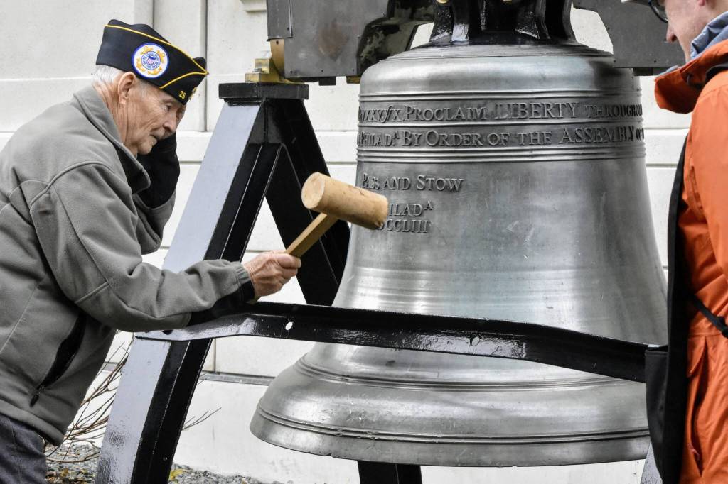 In a quiet ceremony on the steps of the Alaska State Capitol Thursday, the Juneau chapter of Veterans for Peace held its annual bell ringing in remembrance of all those who died in war and to call for global peace.