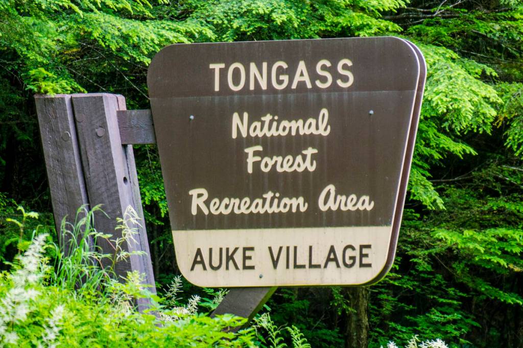 The Tongass National Forest sign stands near the Auke Village Recreation Area. (Michael Penn | Juneau Empire File)