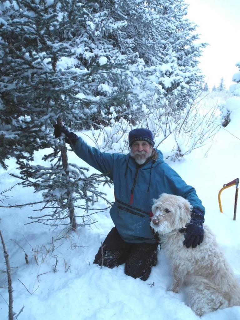 Some years this has been remarkably easy. One year when we lived in Rabbit Creek on the outskirts of Anchorage, a windstorm blew down a big spruce and all we had to do was saw off the top of the tree. For several years my wife, Jenny, and I slogged into the Chugach National Forest and cut a tree, but without sliding off the road. We took the advice of rangers, who suggested cutting trees under powerlines.