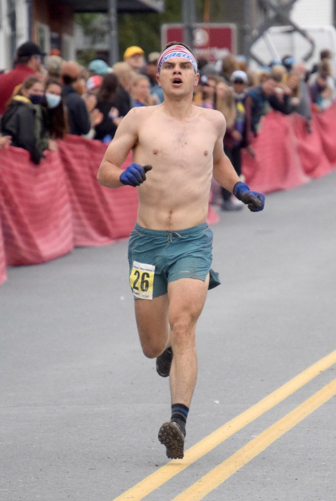 Seward’s Patrick Lewis, 33, ran 3:00:44 to finish 1,132nd and 949th. Lewis won the half marathon at the Kenai River Marathon in late September.