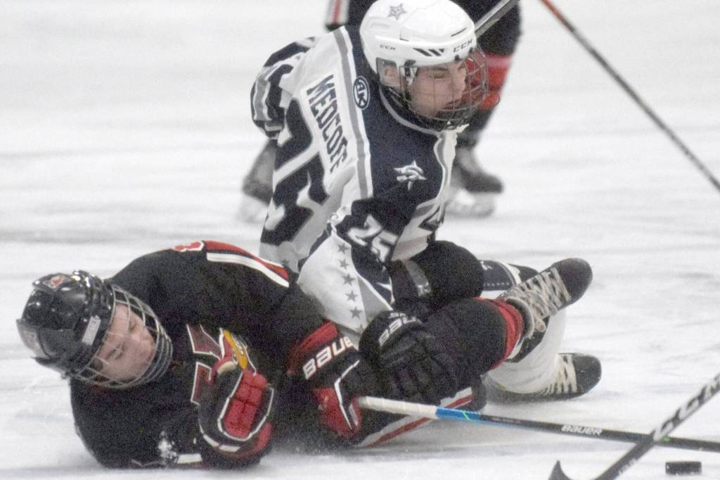 Second period — 2. Soldotna, Burcham (Dahlgren, O’Lena), pp, 0:43; 3. Soldotna, Dahlgren (Medcoff, O’Lena), 10:38. Penalties — Kenai 1 for 2:00; Soldotna 1 for 2:00.