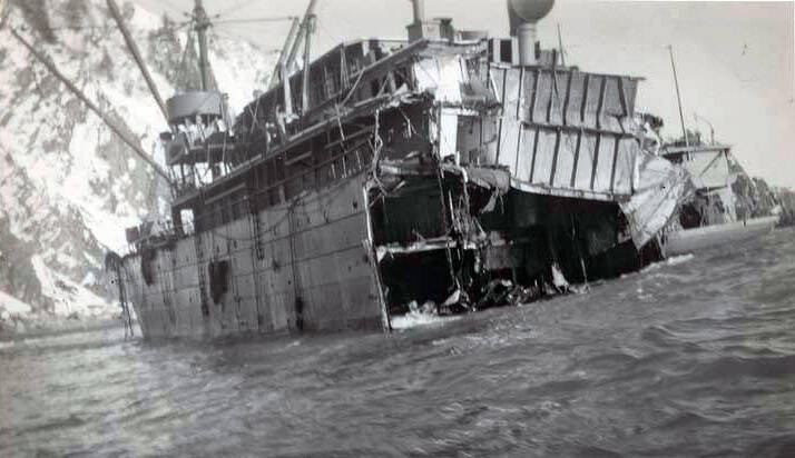 Before the ship broke in half and the stern sank out of sight, Coast Guard personnel ferried about 50 individuals to the Onondaga.