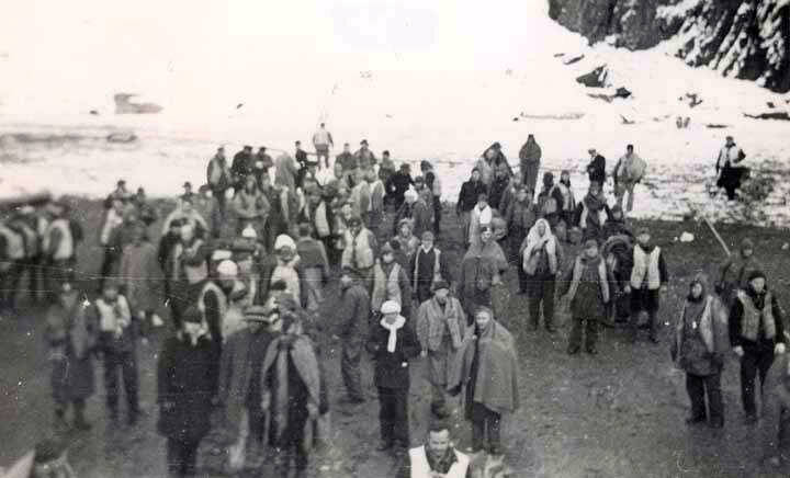 According to The Seward Weekly Marathon, “There was a complete wall of snow and a 40-mile [per hour] east-northeast wind which made any attempt at boarding the doomed vessel suicidal. Air temperatures were reported at around 30 degrees…. [Commander W.E. Streichert] drove the Onondaga to within 700 yards of the plunging wreck and lowered some small motor whale boats. He signaled that he would attempt to take off at once as many women and children as possible.”