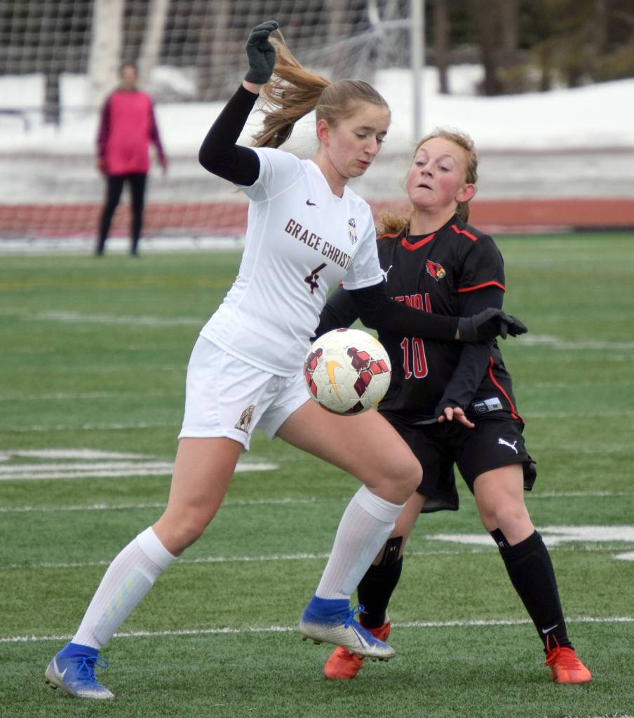 Grace Christian girls soccer coach Jeff Schaezlein couldn’t help but take notice of the persisting nature of the snowpack as the team drove down from Anchorage on Friday for a game at Kenai Central High School.