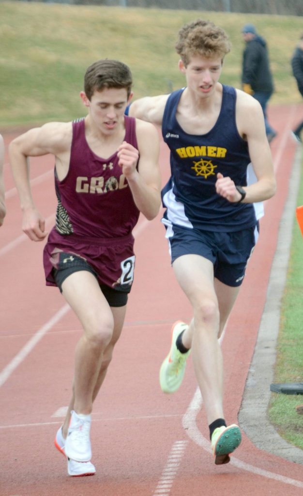 Seamus McDonough had a giant meet for the Mariners, winning the 800, 1,600 and 3,200. Also for Homer, Aiden Brost won the 110 hurdles.
