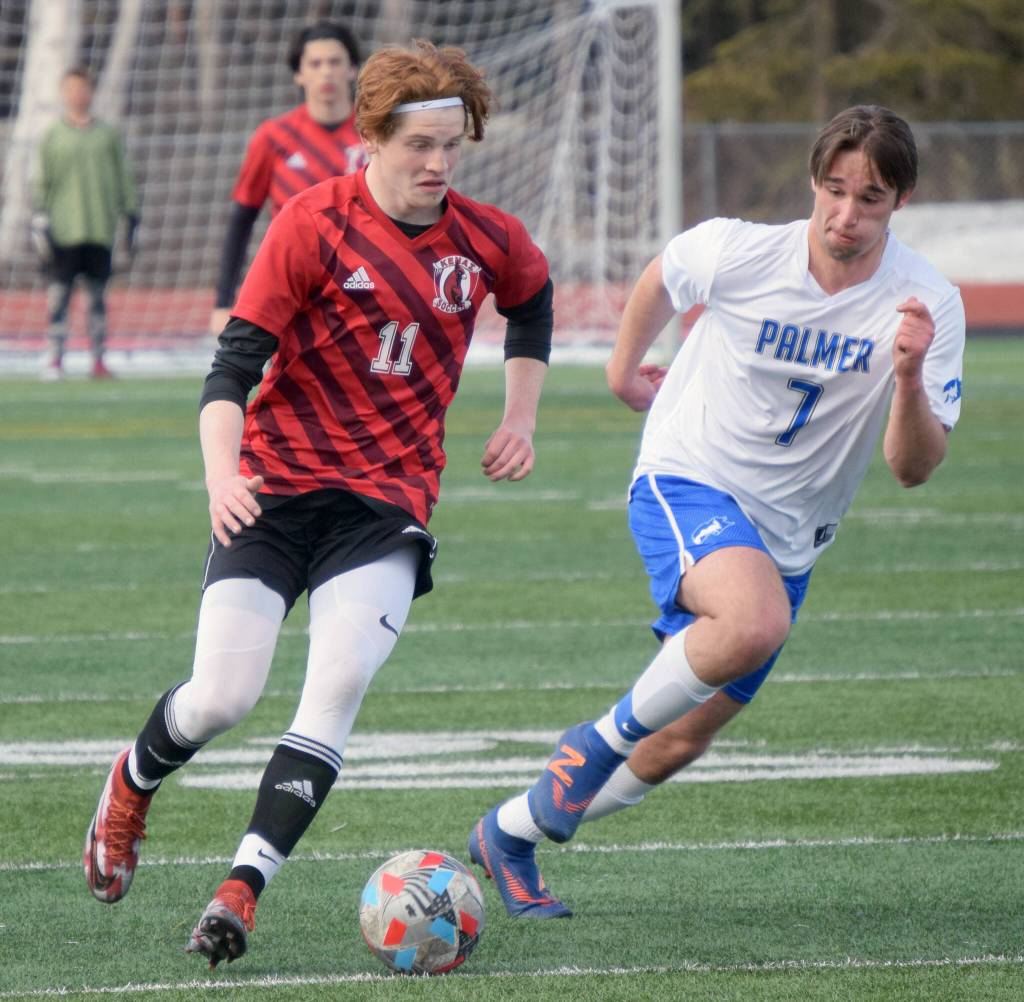 The Kenai Central boys soccer team moved to 4-4 overall with a nonconference, 2-0 victory over Palmer on Friday at Ed Hollier Field in Kenai.