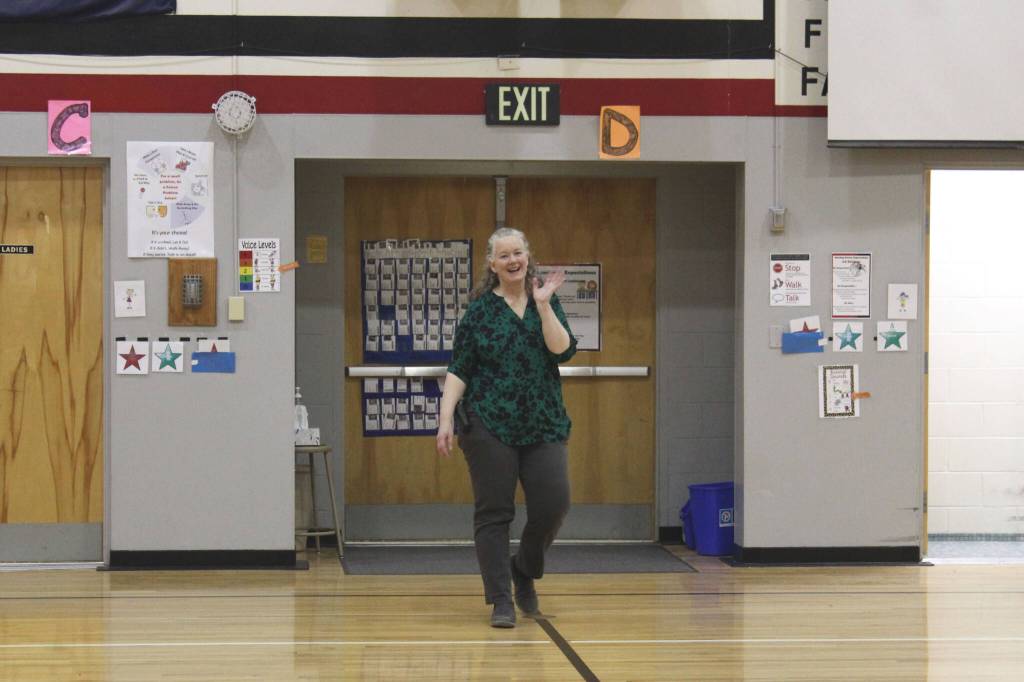 Staff and students at Sterling Elementary School sat quietly Monday morning in the school gym waiting to celebrate their unsuspecting principal. Principal Denise Kelly was named this year’s National Distinguished Principal by the Alaska Association of Elementary School Principals and was honored at a surprise assembly attended by students, staff, her family and Kenai Peninsula Borough School District administrators.