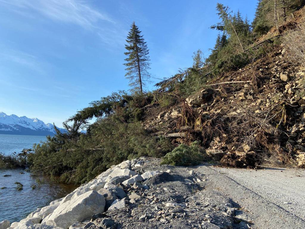 A landslide blocks Lowell Point Road in Seward, Alaska on Sunday, May 8, 2022. (City of Seward)