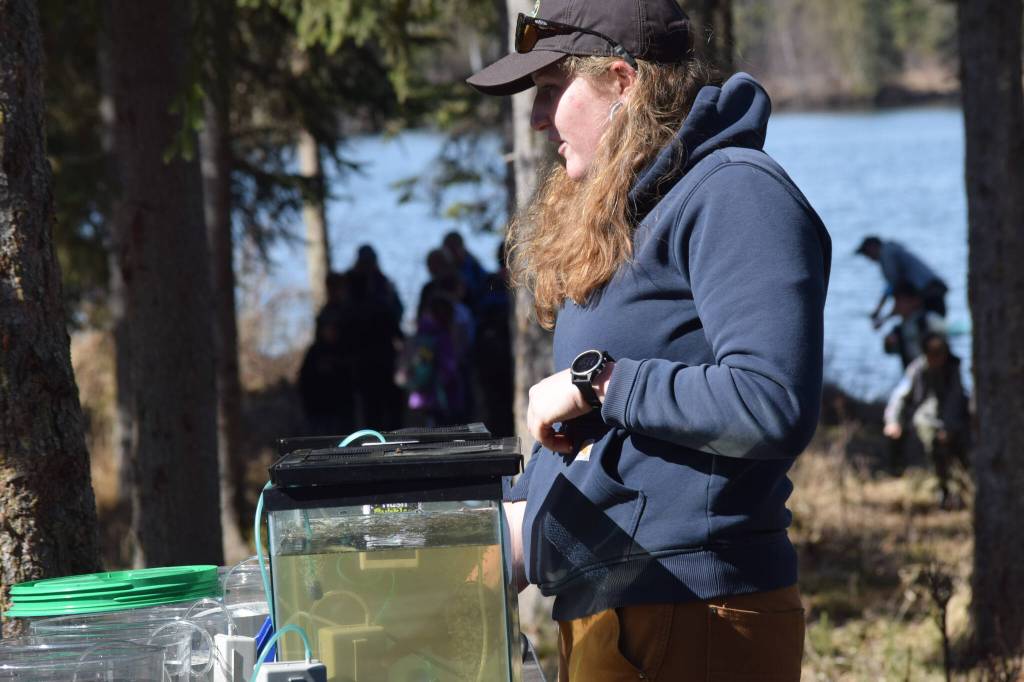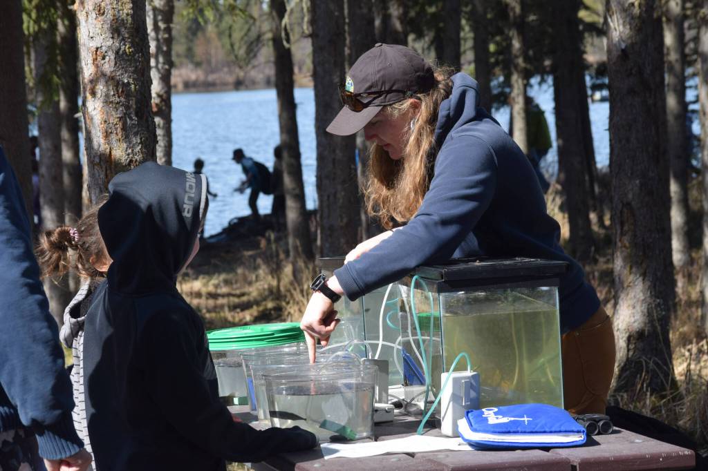 The crux of the event was to have kids release fish, rainbow trout for regulatory reasons, into Johnson Lake. Kyle Griffiths, a fish culturist with the ADF&G, said Wednesday that the goal was to put around 7,000 fish in the water.