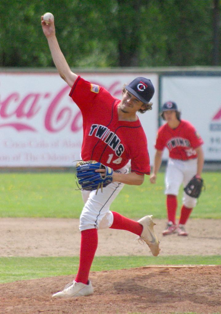 Sunday’s league game saw Atticus Gibson, who was the winning pitcher in the Division II state title game for Soldotna, battle against the Division I champs.