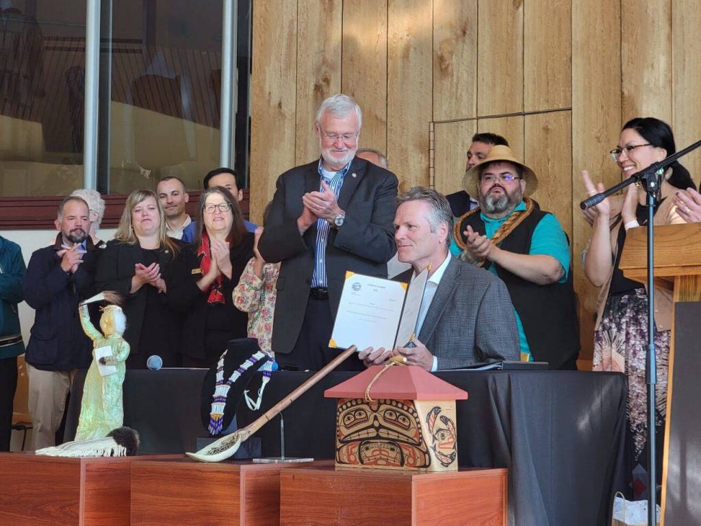 Gov. Mike Dunleavy signed House Bill 123 into law Thursday, marking the first time Alaska’s state government has formally recognized the state’s 229 federally recognized tribes. The bill doesn’t impact the legal status of Alaska tribes, but serves as the first formal recognition of Alaska’s Indigenous people.