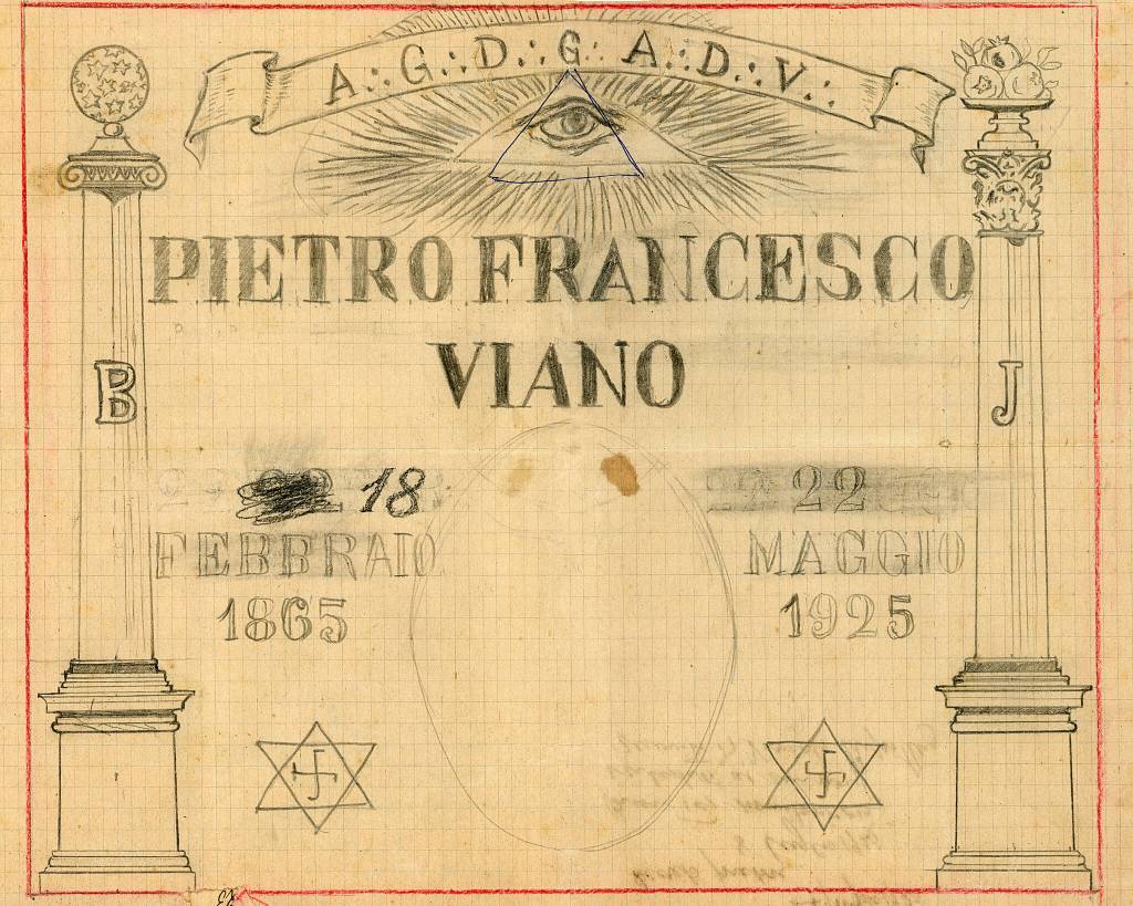 According to Filippo Bruno’s 2011 book on Freemasons of the Imperia region of Italy, Frenchy had become a Freemason in the United States on May 29, 1890, reaching 32nd grade in 1908. After his death at age 60 in May 1925, his nephew Giò Viani designed a tomb for Frenchy containing traditional Masonic symbols.