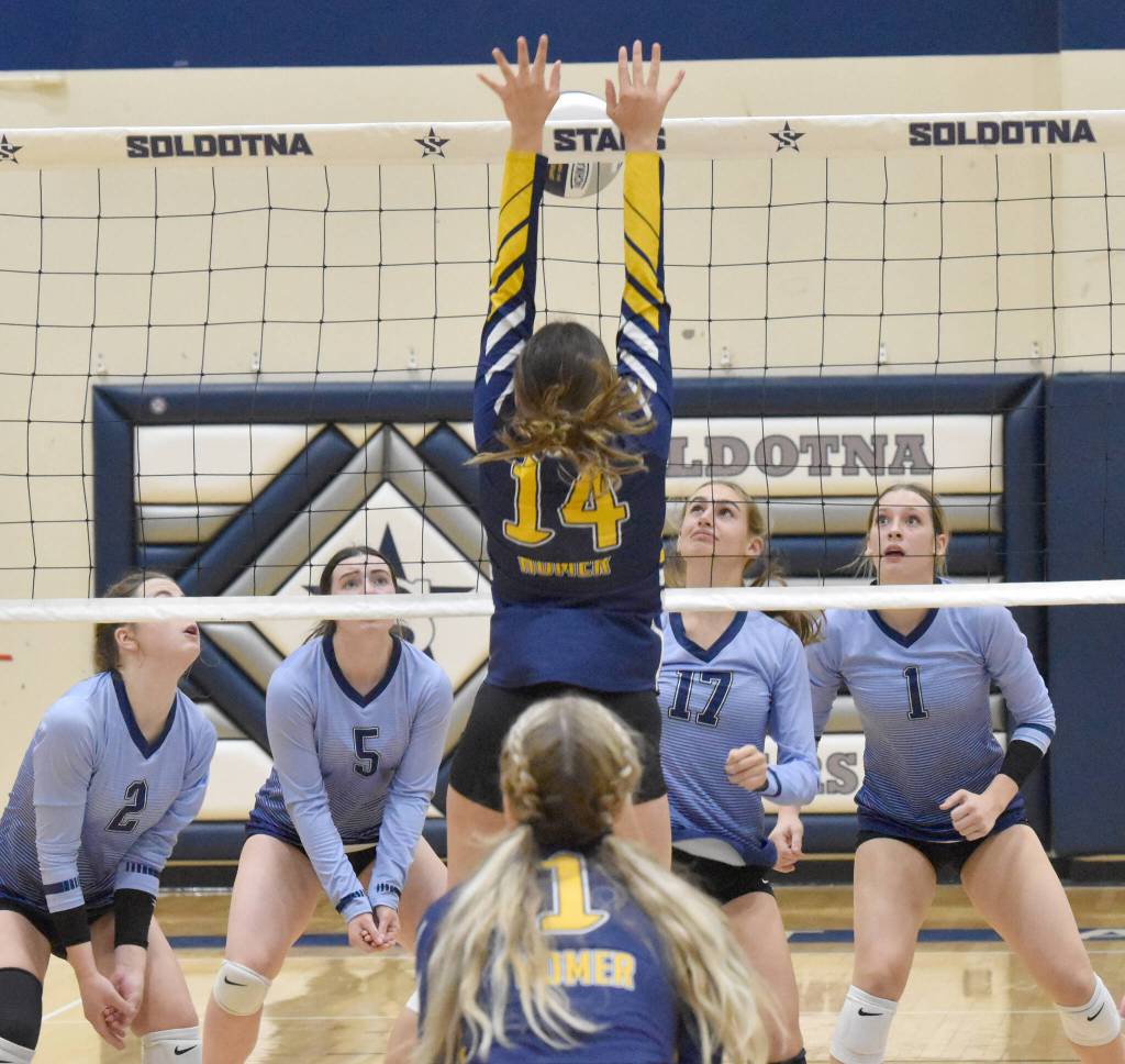 The host Soldotna volleyball team notched its first nontournament victory Tuesday, outlasting Homer 23-25, 25-13, 25-12, 22-25 and 18-16 in nonconference play. The Stars are now 1-5 in nontournament play, while the Mariners are 1-2.