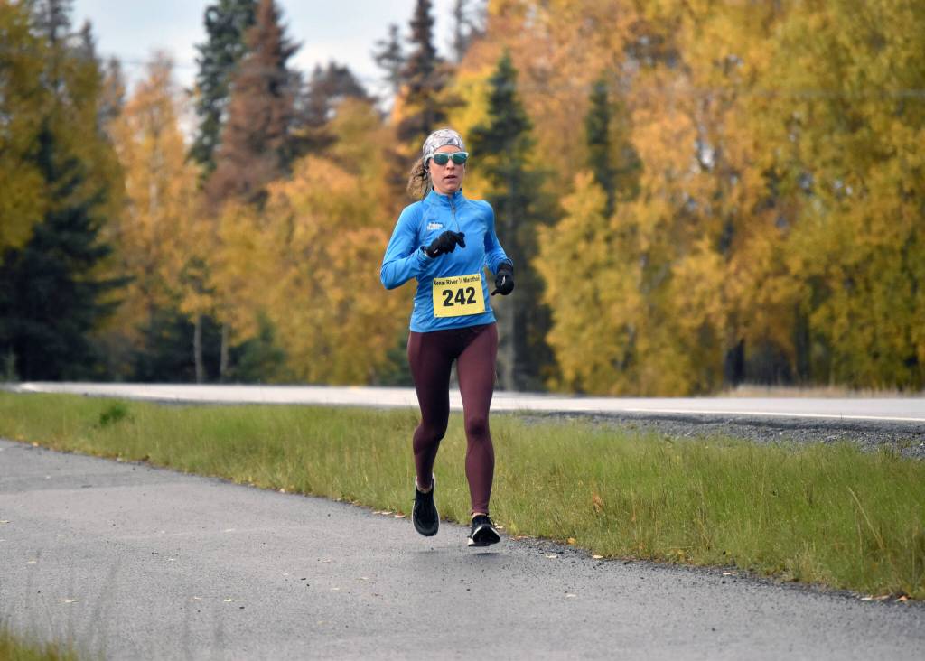 After finishing second in the half marathon last year, Davis won the Kenai River half in her third attempt this year. Sara Larsen was second at 1:47:07.