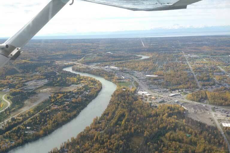 As we fly over the Kenai River, I see boats in the river, and scores of fishermen line the banks below. It is July, the month when fishermen come from all over the world to fish for Pacific salmon that migrate up this river annually as they have for thousands of years.