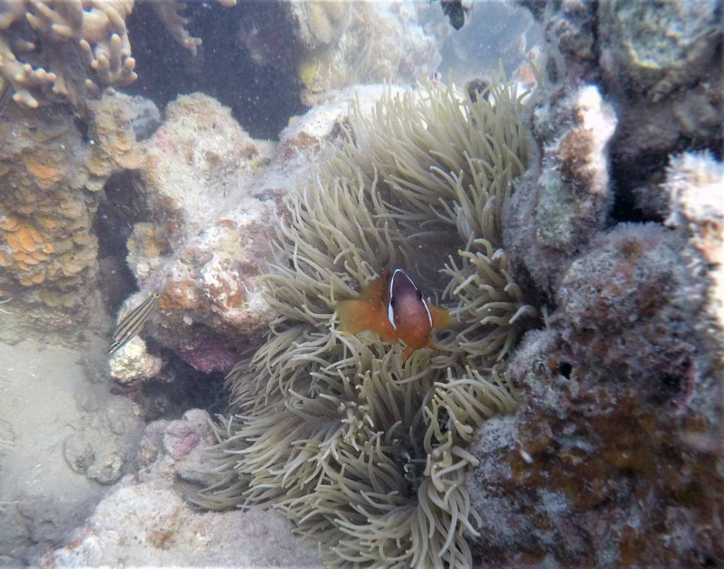 Fiji is famous for its crystal-clear waters and colorful coral reefs. I was very excited to get into the water and start exploring. After several days of snorkeling, my son and I had found many species of fish, including some nice size clownfish that came out of their anemone and within a half inch of my mask, trying to chase us away.