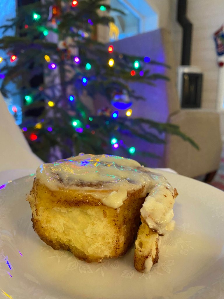 Warm cinnamon and whipped vanilla cream cheese frosting are the official scents of Christmas morning in my house, and after the serious business of opening gifts and assembling toys was done, I served the soft and sticky treats to my happy little family — the beach long forgotten.