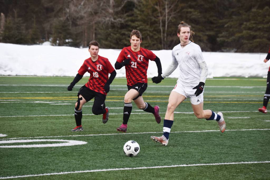 The Kardinals boys soccer team played and won their first match Thursday against Dimond High School on a field neighbored by feet of snow.