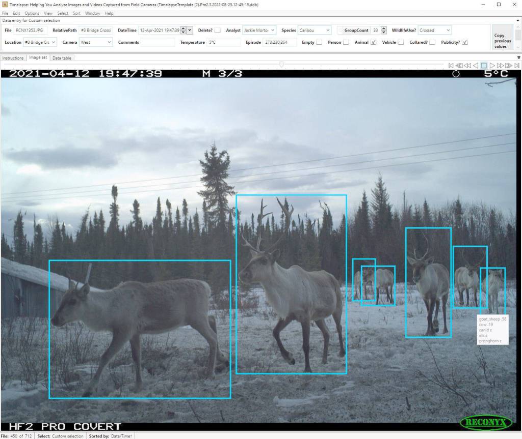 Once MegaDetector was added to TimeLapse2, we no longer had to spend time identifying species and empty images. Our efforts now focused on training the AI software by introducing new species (caribou) and correcting misidentified species (elk) because the program was designed in the Rockies, not Alaska.