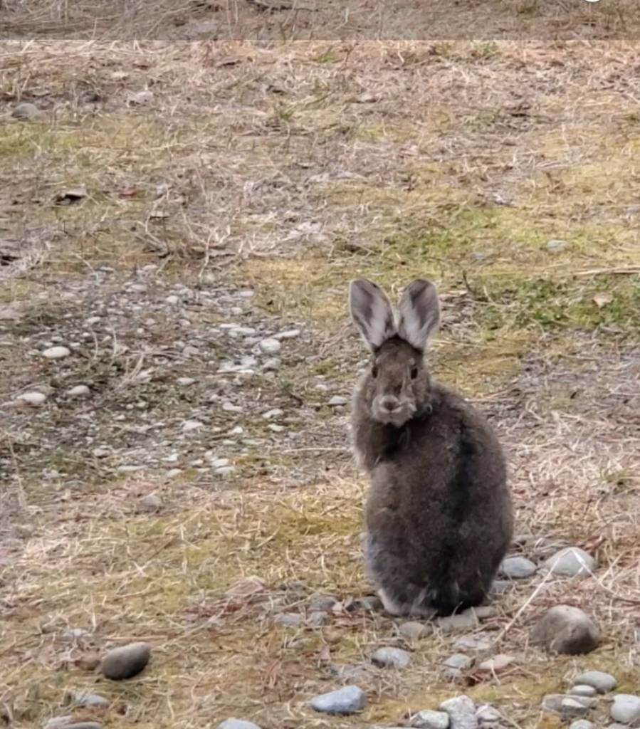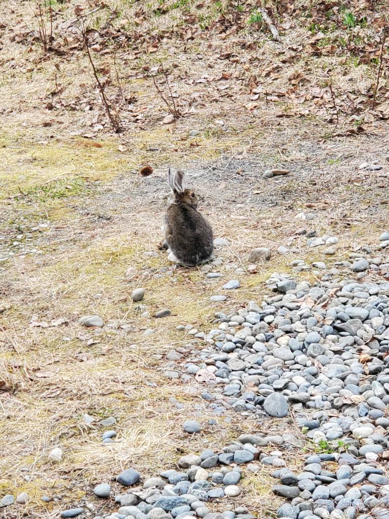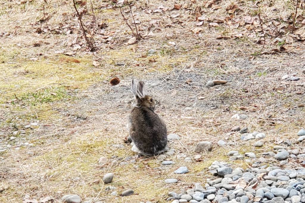 A wild hare stops for a rest in May 2023 in Anchor Point, Alaska. (Delcenia Cosman/Homer News)