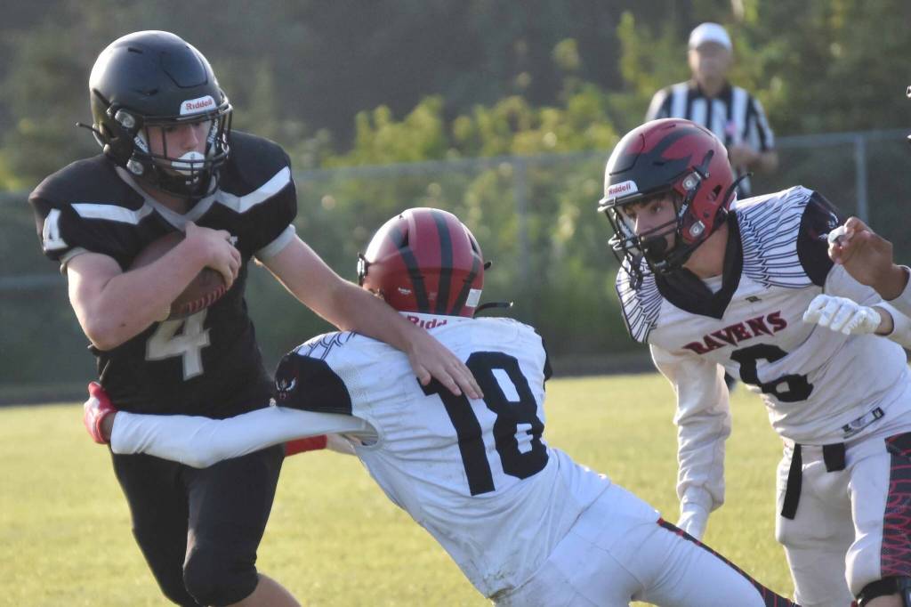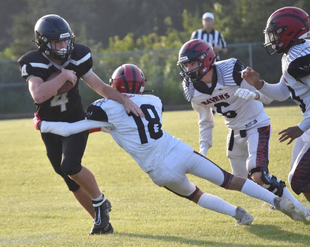 In the first half, the Ravens lost two fumbles and had the ball when the clock ran out in the second quarter. In the second half, Eielson turned the ball over on downs once and lost another fumble. McCaughey had two fumble recoveries for Nikiski.