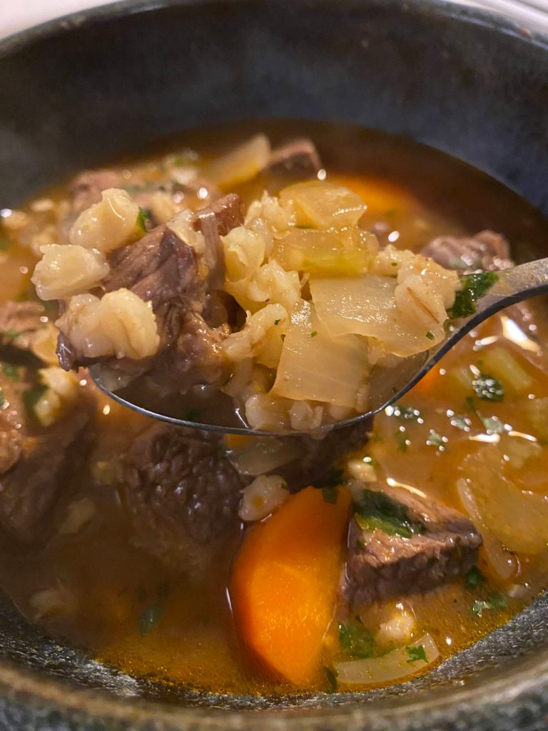 ***This is a great crockpot meal if you need to plan for dinner in advance. Searing the meat at the start is very important for flavor, so don’t skip that step, but after that, you can simply drop all the raw vegetables, tomato paste, herbs, seasonings, browned meat, stock, and barley into the crock, then set on low heat for 8-12 hours.***