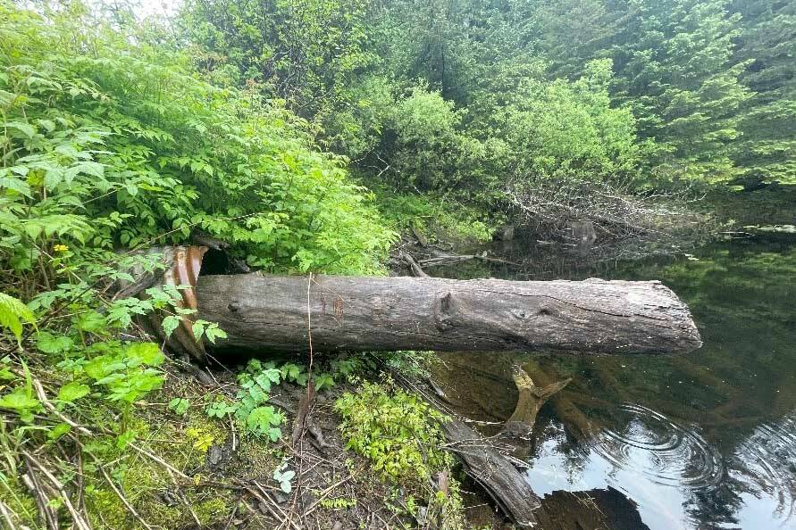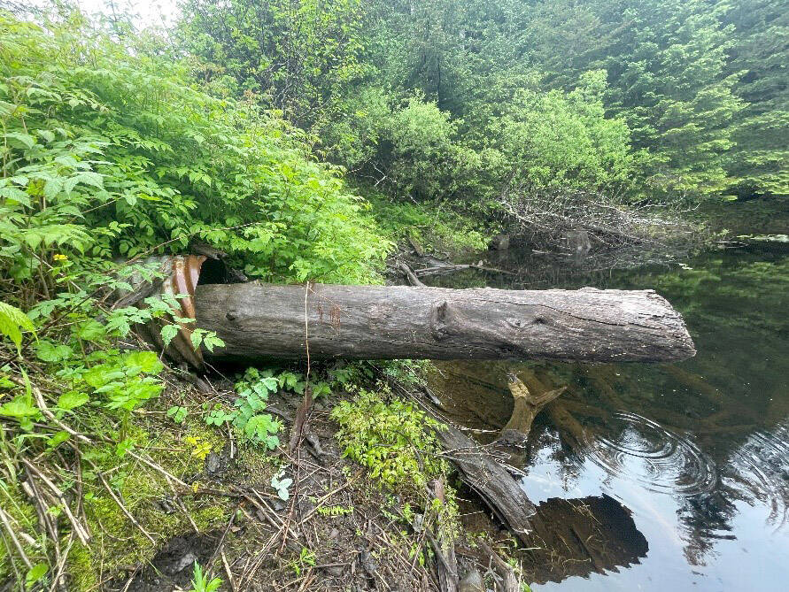 Example of a culvert blocked by natural materials on Port Graham Road. (Photo by Sarah Apsens/USFWS)