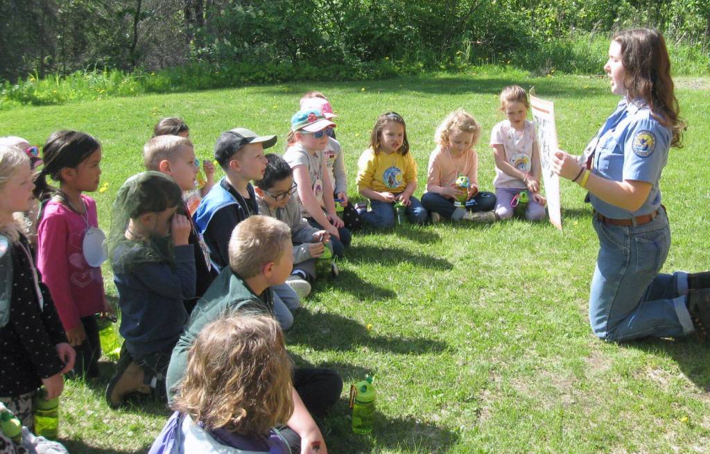 Rowan Yorkston explains the importance of the different habitats on the Kenai Peninsula to “Critter Camp” campers. (Photo provided by refuge)