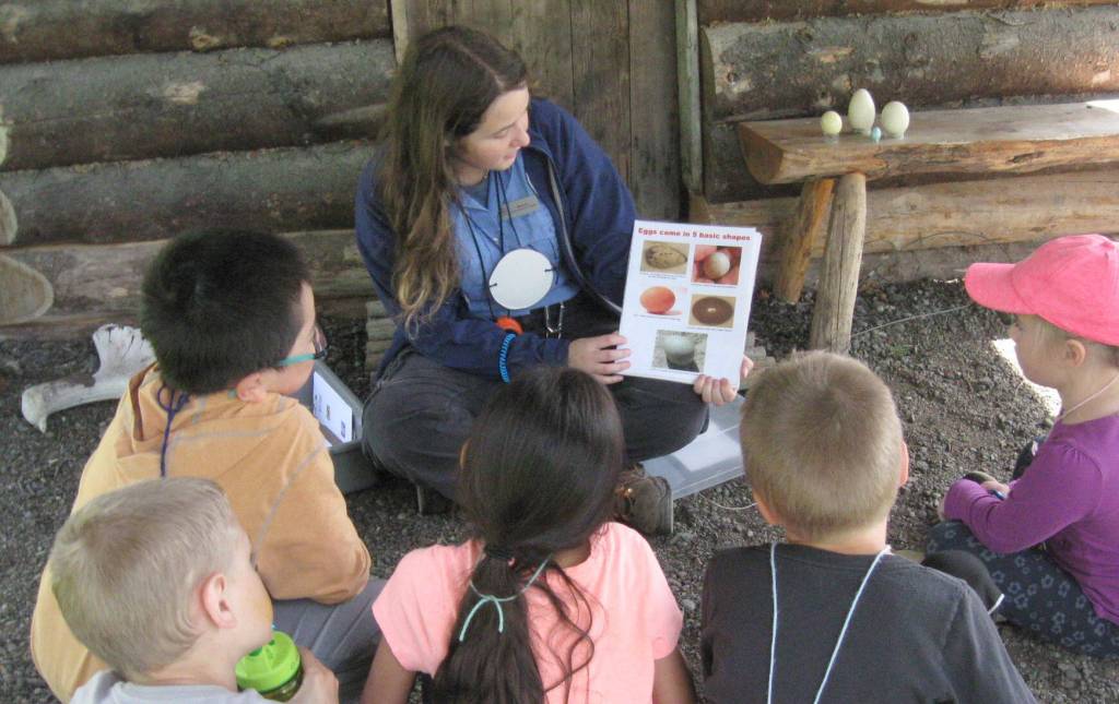 Rowan Yorkston teaching "Critter Campers" about the different shapes of eggs. (Photo provided by refuge)
