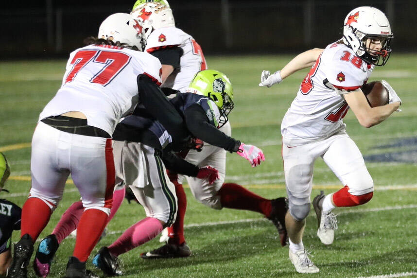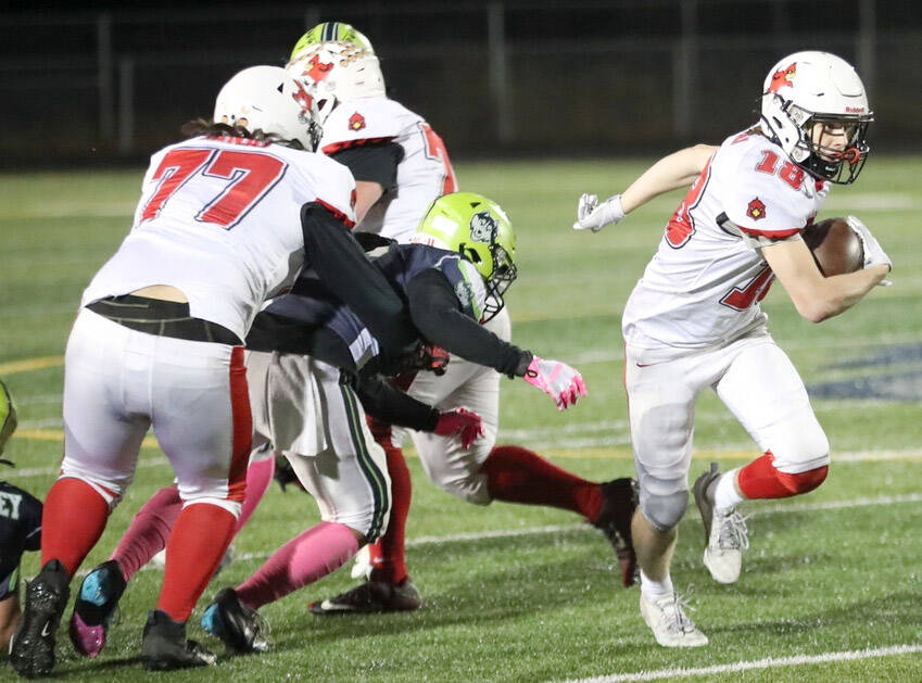 With just less than three minutes remaining in the game, with Redington facing fourth-and-16, the Kards stopped the Huskies 4 yards shy of a first down. Two plays later, Aasen Campanella rushed for a 14-yard touchdown run to push Kenai’s lead to 27-20.