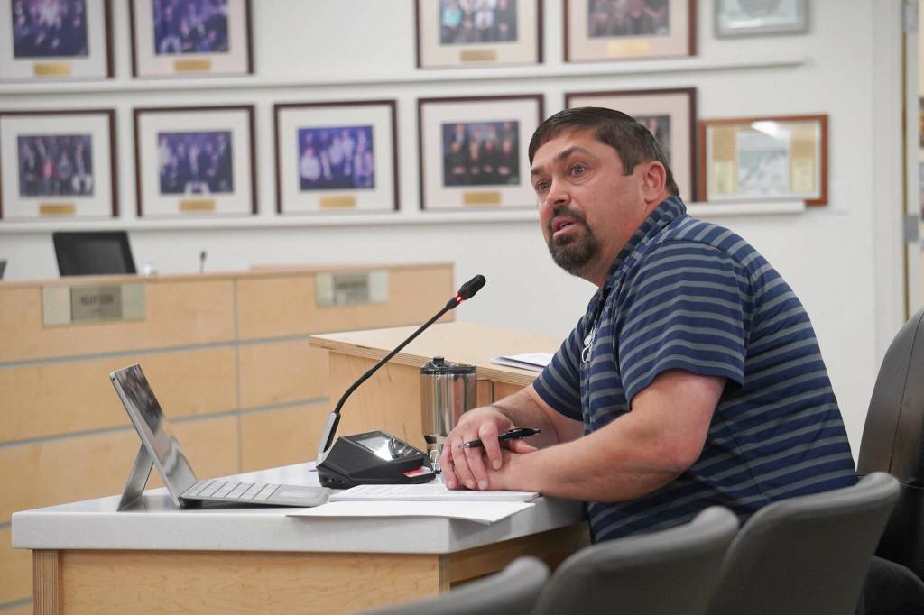 Kyle McFall, formerly the principal of Kenai Alternative High School and now education director for the tribe, presented their proposal for Tułen Charter School.